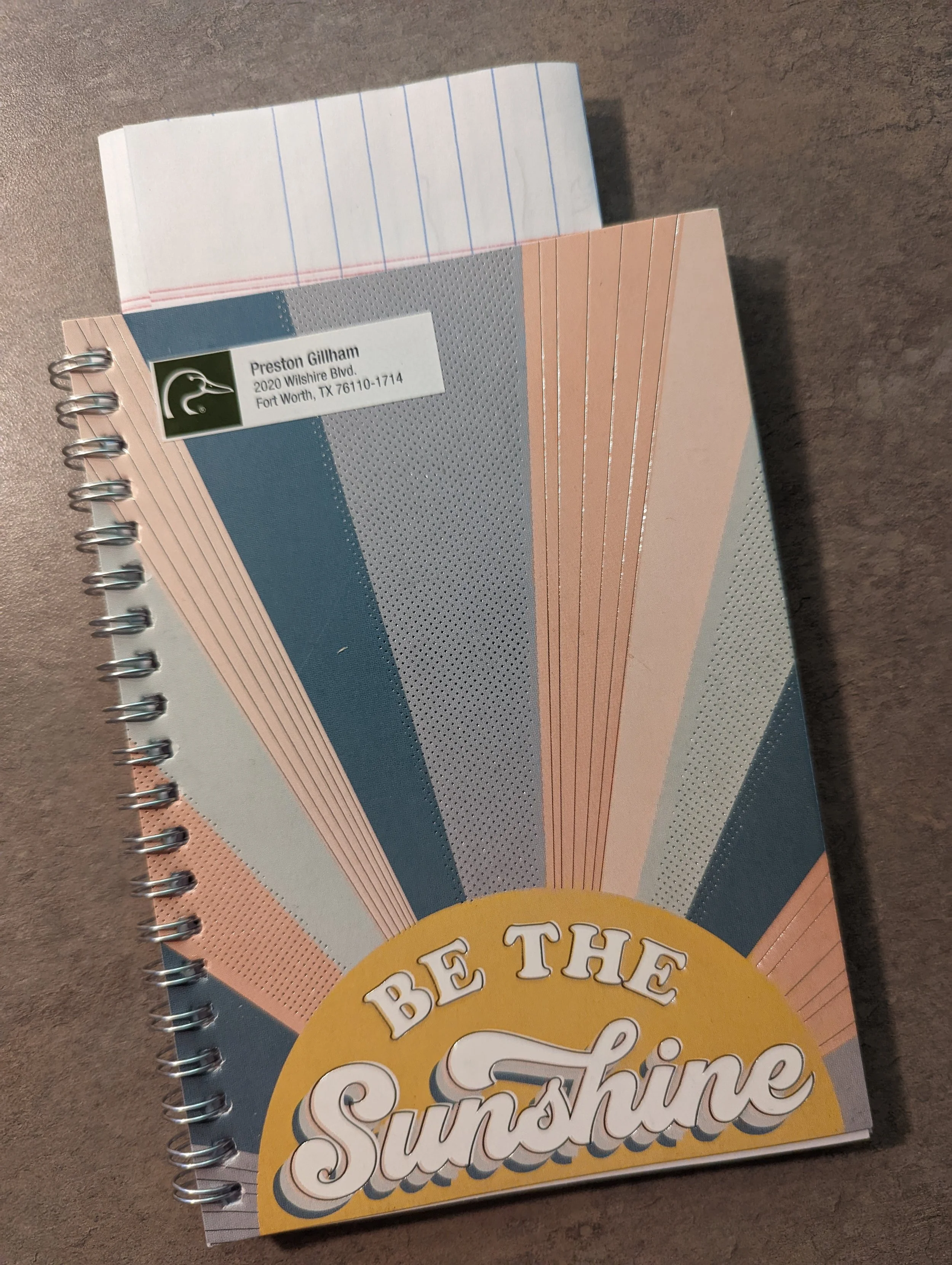 There was one crisis. Since I was determined to avoid my keyboard, it was cataclysmic to discover I had no paper upon which to write my revelations. But the crisis was averted when I found a small notebook at the grocery. The cover declares, “Be the Sunshine.”